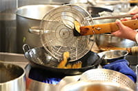 なすを高温で素揚げする。