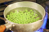 塩をしたお湯にグリーンピースを入れ、柔らかくなるまで塩茹でする。