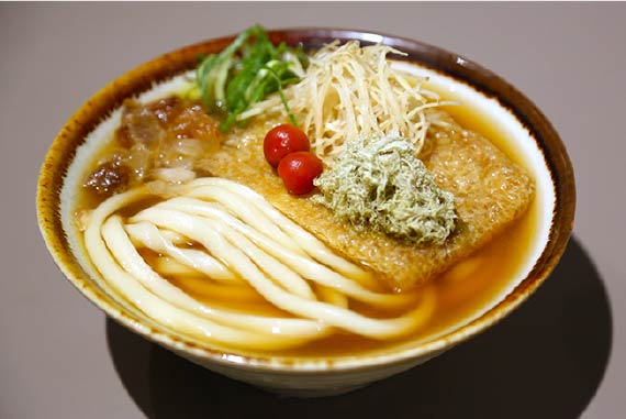 あっさりしたおだし、麺、揚げを食べ進むうちに、お揚げの甘さがだしに移って、だしの味わいが変化します。だし、麺、具材の三位一体でいただくきつねうどんは最後のだしの一滴まで飽きさせない、まさに大阪が生んだ文化遺産、日本麺文化の最高傑作なのです。