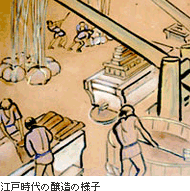 江戸時代でも初期の頃は、政治の中心は江戸に移ったといっても、文化の中心はまだまだ上方(京都・大阪地方)。しょうゆの産地も上方が中心でした。特に泉州境で酒とともに作られていた「醤油溜(しょうゆだまり)」は評判が高く、元禄のころは名産品として諸国に流通していたと見られます。