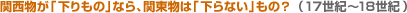 17世紀から18世紀にかけて、大阪、ついで江戸が大市場として成長してきます。すでに菱垣廻船や樽廻船という定期船が大阪と江戸を結び、評判の高い上方のしょうゆも江戸に運ばれ、「下りしょうゆ」として名声を博しました。この頃はしょうゆに限らず、酒でも菓子でも上方から下ってくる「下りもの」は高級品、江戸周辺の産物は「下らない」もの、つまり下級品ということになっていました。 |