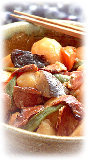 いわしやあじ、さばなど個性の強い魚の煮つけ、かつおの角煮、骨ごと食べる小魚のつくだ煮、ごぼうのいり煮、レバーのしょうが煮など、当初は水やだし汁で煮るとしても、仕上げのころにはほとんど汁気をとばしてしまうような煮物には、こいくちしょうゆがぴったりです。炒め物をする時も風味豊かなこいくちしょうゆが合います。火を止める直前に加え、さっとひと炒めしてください。また、肉や魚の照り焼きのたれに使うと、つやと濃厚な味が出せます。こいくちしょうゆは和風、洋風、中華、どんな料理にも合うので、和風ドレッシングを作ったりするのにも適しています。