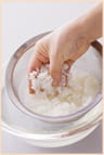 雑炊にするご飯は、水でさっと洗ってから鍋に加えましょう。余分な粘りけが取れて、さらりとした口当たりになると同時に、つゆを含みやすくなるので、おいしさがアップします。