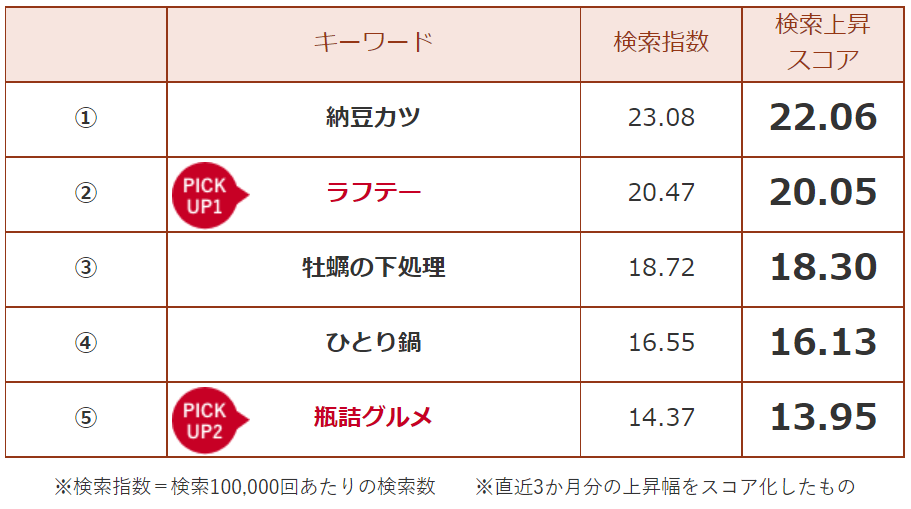 消費者の検索が伸びている、飲食関連のキーワードをご紹介します。何が注目されているのか、「消費者の今」がわかります。また、気になるキーワードをピックアップし、なぜ検索が急上昇したのかを探ります。