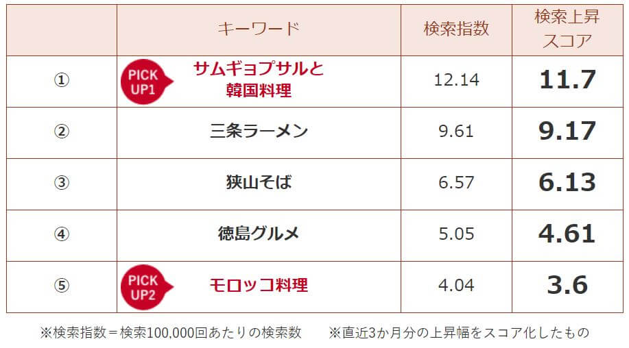 消費者の検索が伸びている、飲食関連のキーワードをご紹介します。何が注目されているのか、「消費者の今」がわかります。また、気になるキーワードをピックアップし、なぜ検索が急上昇したのかを探ります。