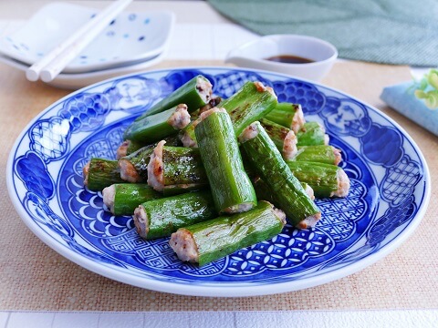いつもはあまり使わない長ねぎの緑色の空洞部分に、餃子の種をギュウっと詰め込んで香ばしく焼きました。味付けは「ヤマサ ぱぱっとちゃんと これ!うま!!つゆ」にお任せ!「ヤマサ昆布ぽん酢」であっさりいただきます。