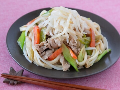 ■豚肉ともやしレモンのさっぱり焼きうどん(10分)