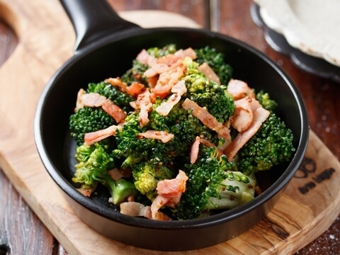 レンチンしたブロッコリーに、ささっと炒めたベーコンを合わせ、味付けは「ヤマサ 絹しょうゆ減塩」と粒マスタードで。そのままはもちろん、マヨネーズを加えてパンにのせても♪