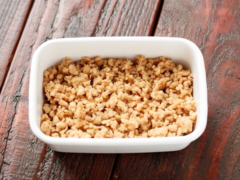 フライパンに材料を合わせて混ぜるだけの簡単そぼろ。「ヤマサ 絹しょうゆ減塩」に柚子胡椒を加えてさわやかに。ご飯にのせたり、おにぎりの具にするのもおすすめです。