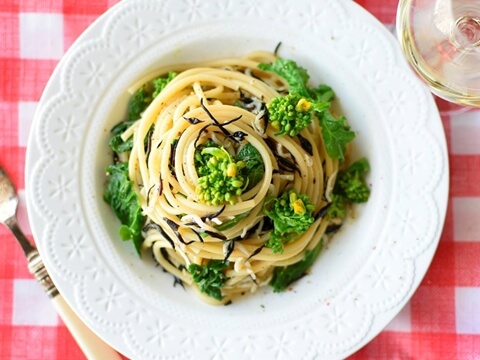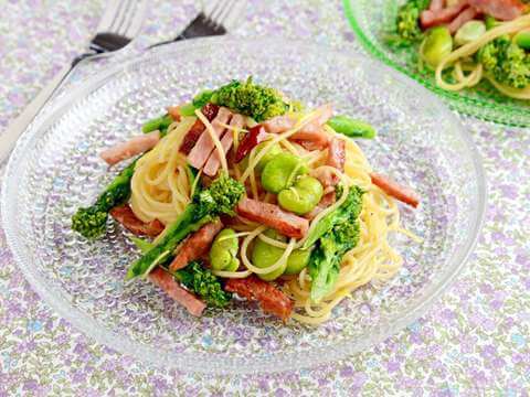 ■菜の花とそら豆のペペロンチーノ風レモン風味