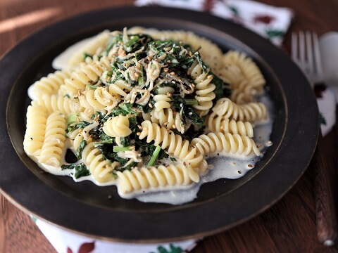 ■かぶの葉としらすのしょうゆクリームパスタ