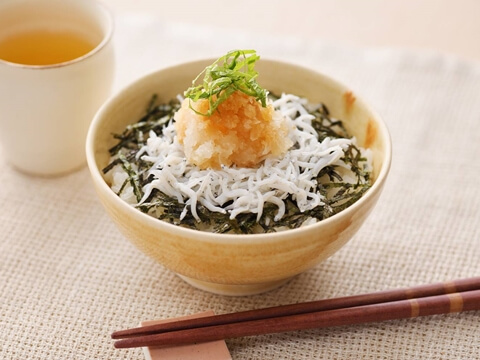 一見シンプルなしらす丼ですが、実はごはんとごはんの間にもしらすと海苔を入れてひと工夫。このおいしさが5分でできるのはうれしい一品!