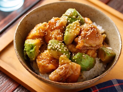 ■鶏とアボカドのレモンバターしょうゆ丼(10分)