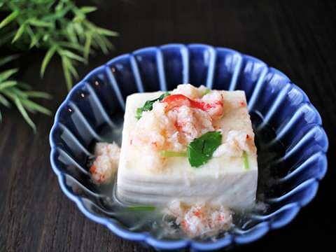 口当たりなめらかで上品な味わいの温奴。「ヤマサ昆布つゆ 白だし」で作ったあんで、豆腐とかにの色味もきれいに仕上がります。
