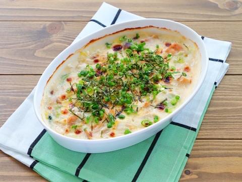 いつものホワイトソースに「ヤマサ昆布つゆ 白だし」を加え、ほっこりおいしい和DEミックスなグラタン。とろりとした白菜が身体も心も温めてくれます。
