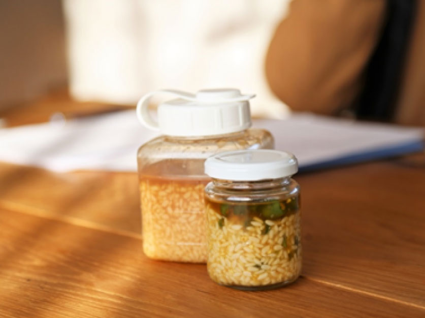 俺ね、「ヤマサ ぱぱっとちゃんと これ!うま!!つゆ」を米麹に使ってみたんだよね。空きびんとかに、「ヤマサ ぱぱっとちゃんと これ!うま!!つゆ」と米麹を入れて漬けるだけ。これ(写真)は冷蔵庫で2ヵ月位漬けたもの。