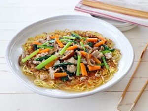 パリッと焼いた麺と、具だくさんのとろとろあん。不動の人気を誇るあんかけ焼きそばは、あん作りが一番のポイント。味付けは「ヤマサ ぱぱっとちゃんと これ!うま!!つゆ」におまかせ!調味料をあれこれ計量しなくても、味をピタリを決められます。
