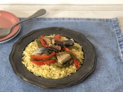 ■うま味たっぷり!炊くだけさば缶パエリア