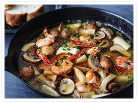 | 海老ときのこの旨辛黒アヒージョ |