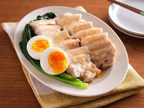 手がかかりそうなチャーシューも、作り方は簡単!豚肉を下ゆでし、「ヤマサ まる生ぽん酢」に浸してうま味をしみ込ませるだけ。ゆで豚で、さっぱりと美味しいご馳走チャーシューができあがります。