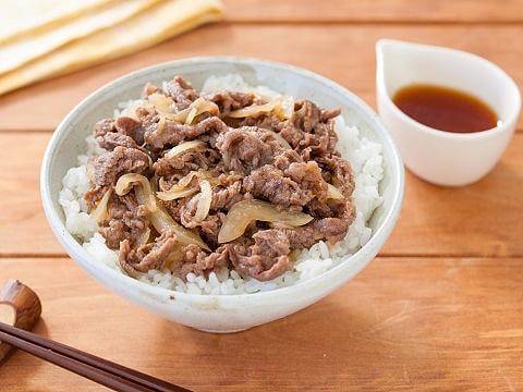「ヤマサ まる生W(ダブル)おろしぽん酢」とみりんで味付けた、あっさりとした酸味とまろやかな甘味がおいしい牛丼。「ヤマサ まる生W(ダブル)おろしぽん酢」は、炒める時だけでなく、仕上げにもダブル使い!さわやかな香りが楽しめます。