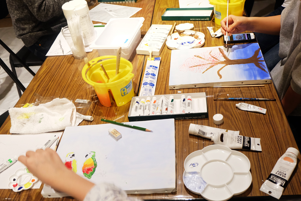 出品作家であるカロリーナ・ラケル・アンティッチ氏を講師に、忘れられない記憶や思い出を アクリル絵の具を用いてキャンバスに描いていきます。