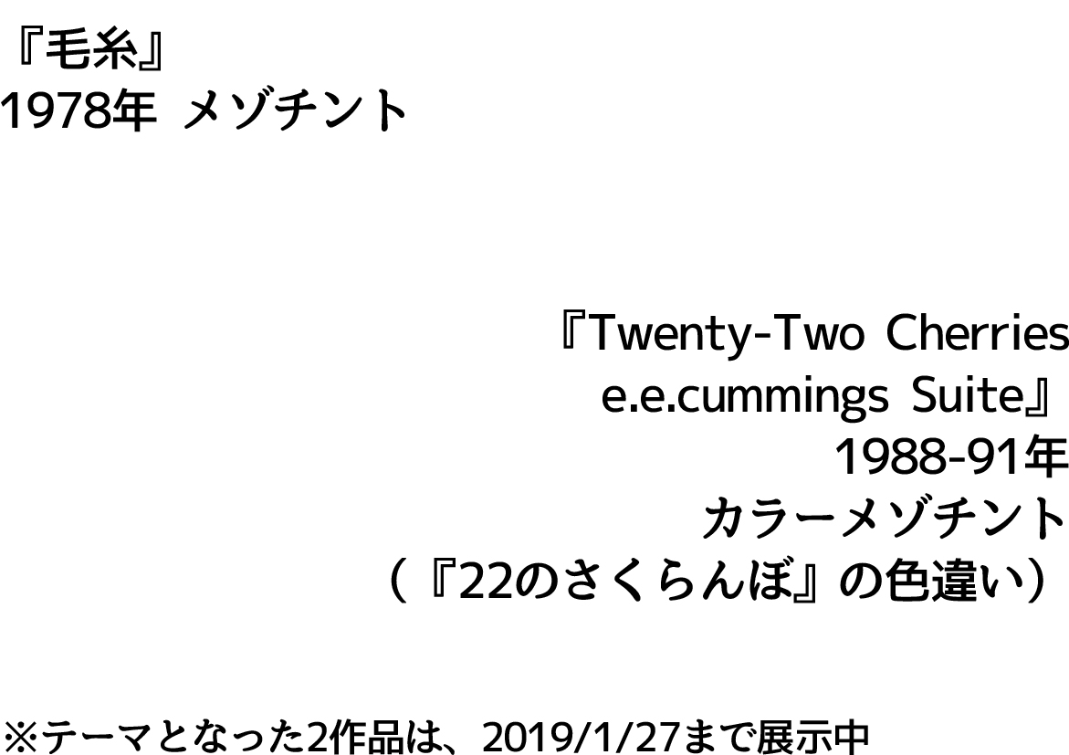 浜口陽三の作品から、1988-91年に制作された『Twenty-Two cherries e.ecummings Suite』(『22のさくらんぼ』の色違い作品)、1978年に制作された『毛糸』をテーマにダンス+ピアノ演奏による作品を上演致しました。