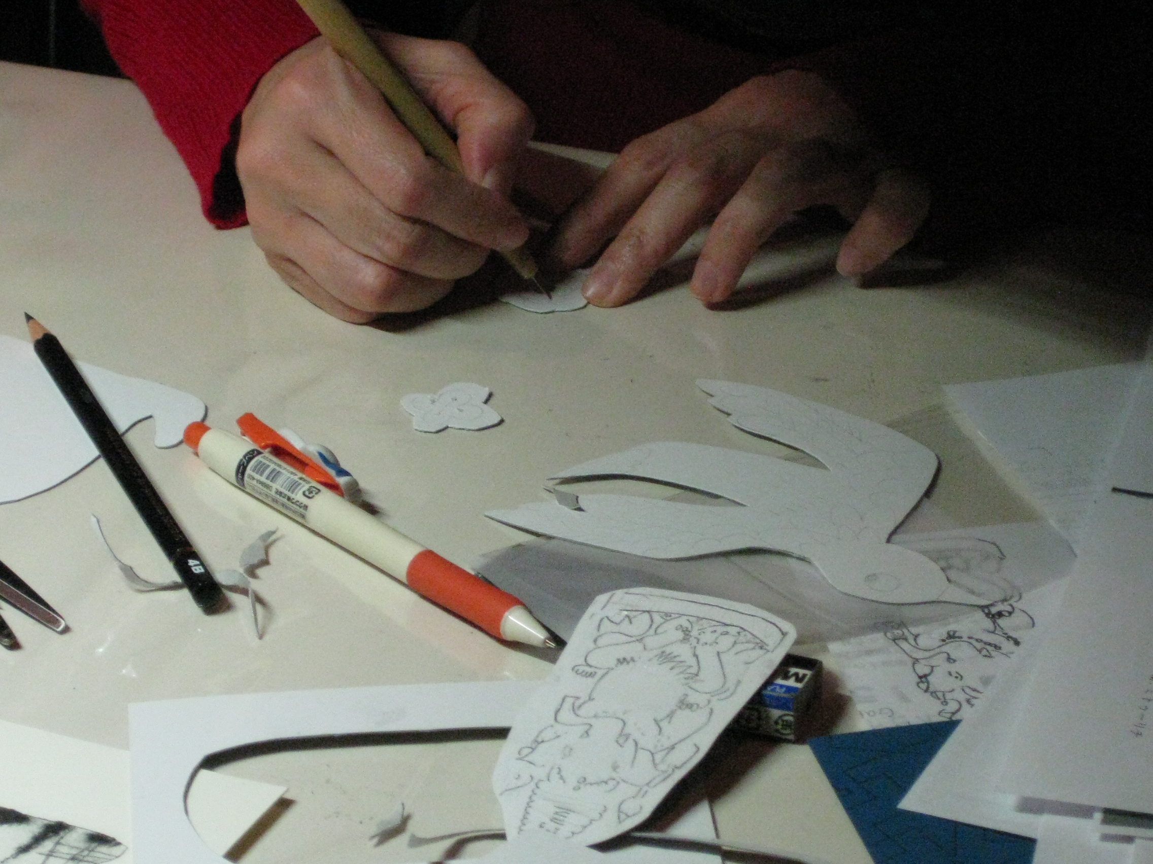 「はさみで好きな形に切ることができるのが、紙はんがの魅力のひとつ。自由に輪郭を切り取ってみてください」 |