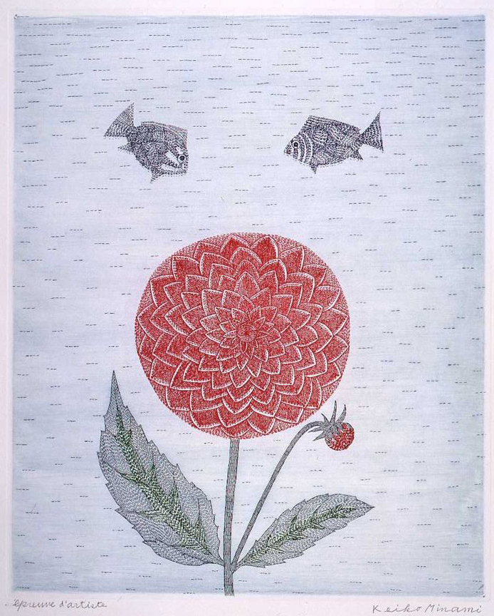 『赤い花と魚』 南桂子 1970年 銅版画 |