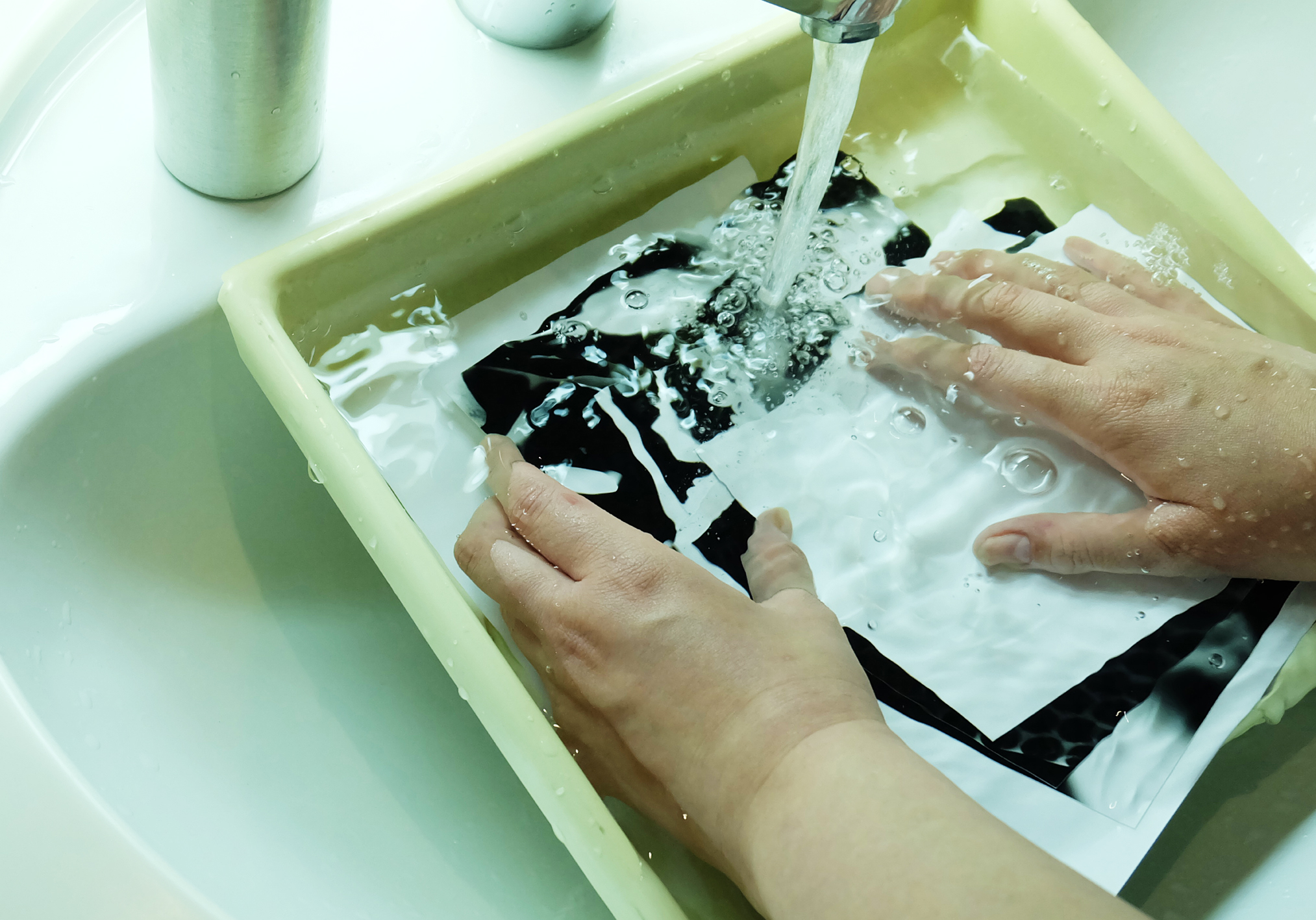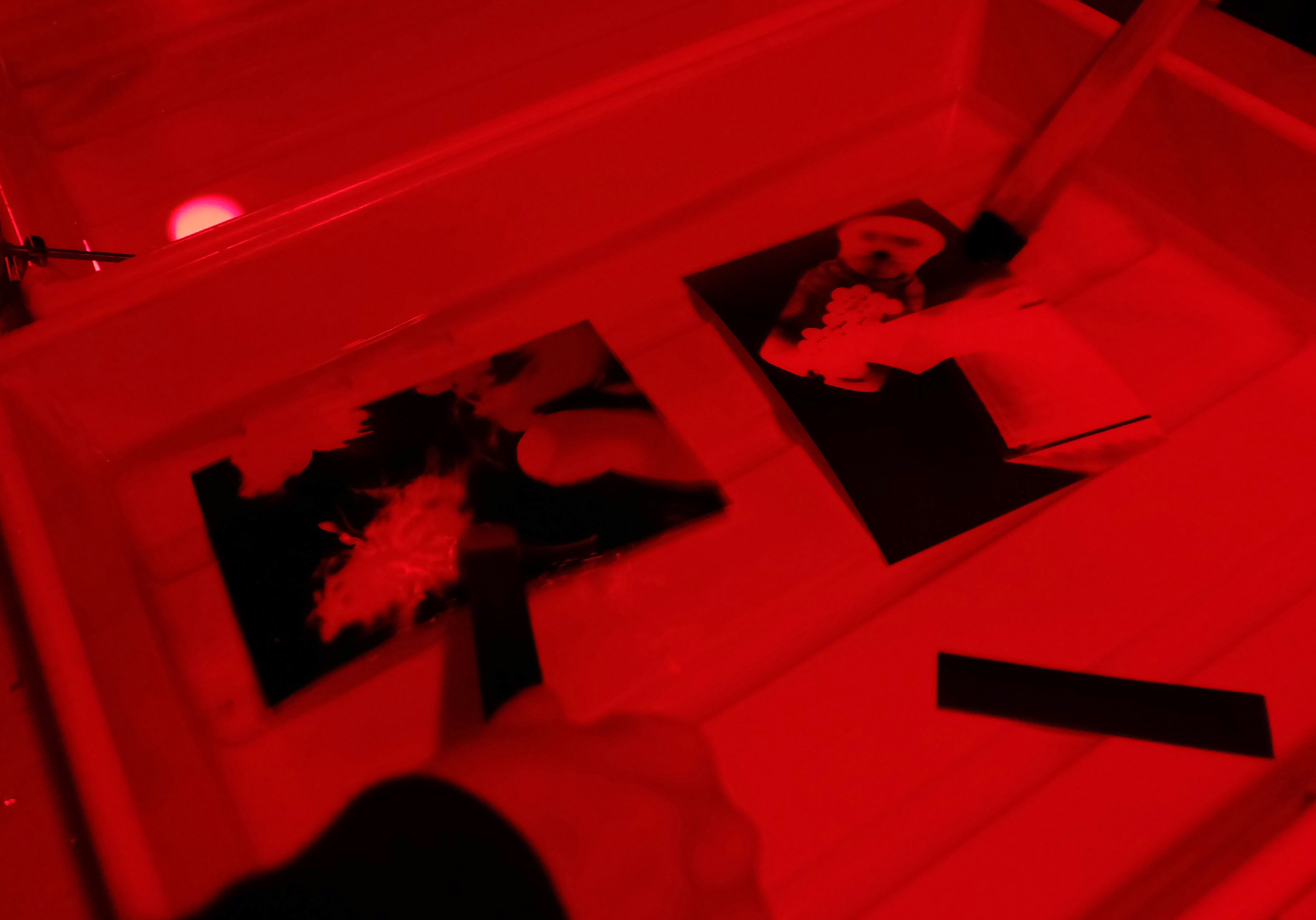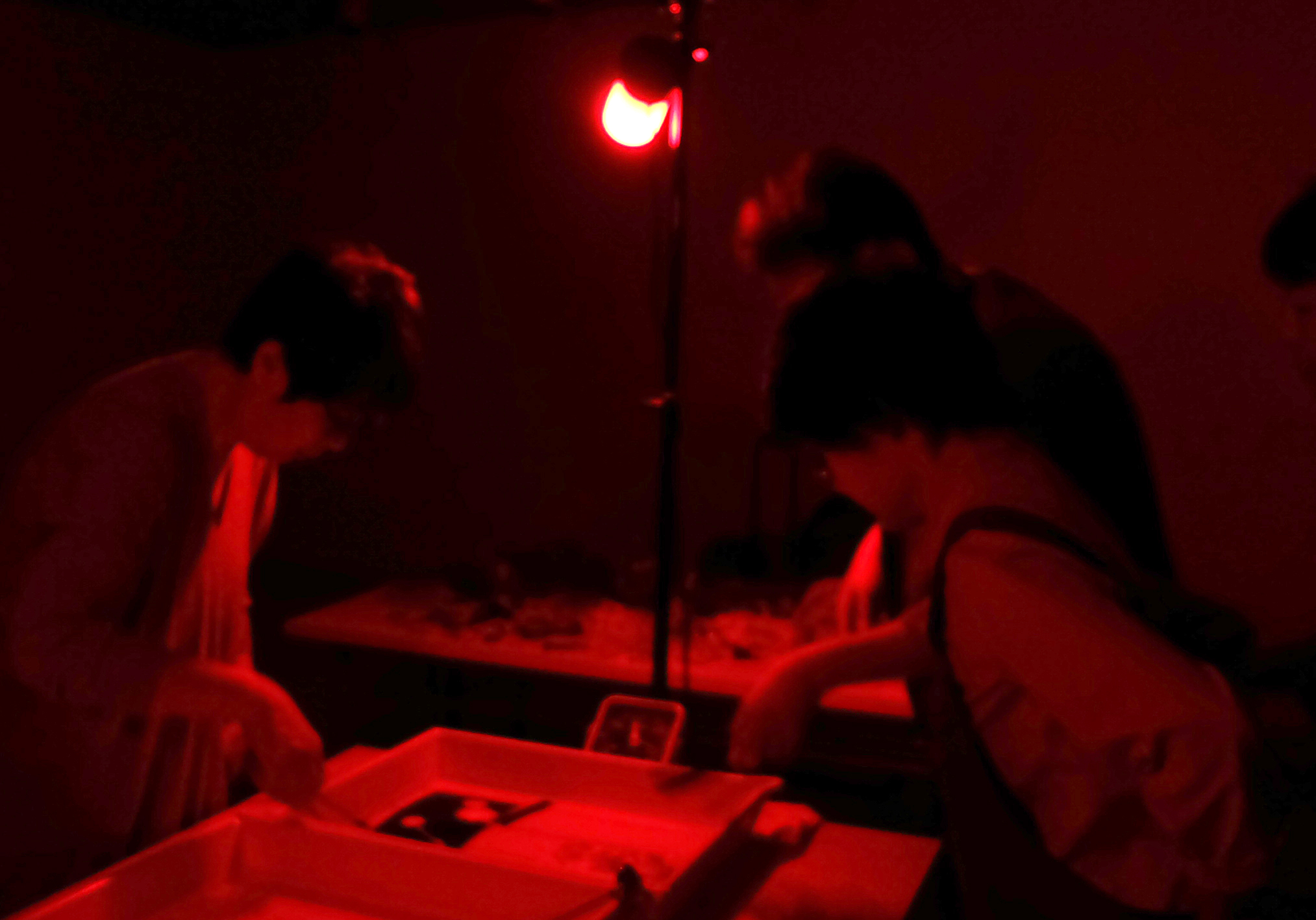 モチーフを感光する作業は、懐中電灯の光をほんの一瞬印画紙に当てるだけで終わってしまいます。
