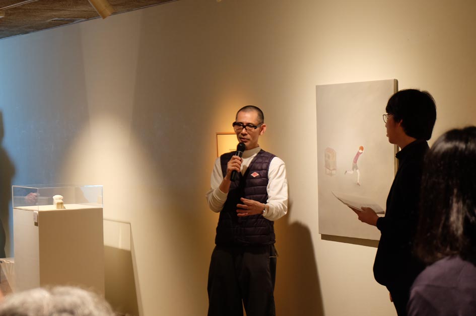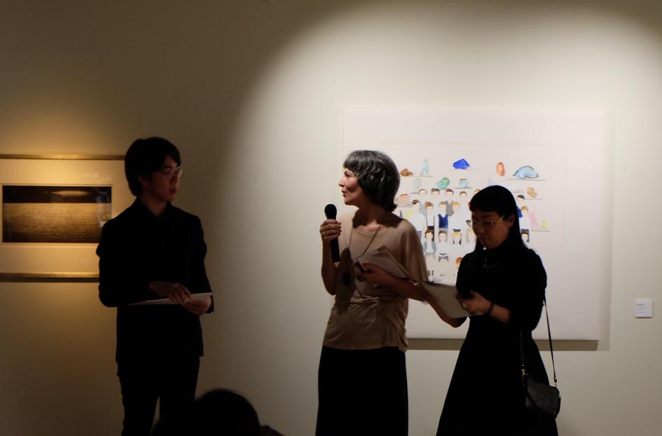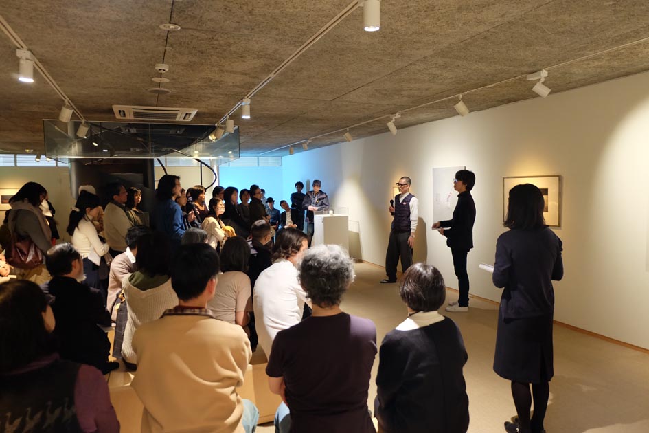 3月24日(土)に開催された、「忘れられない、」展のギャラリ―トークは、顧問として展示に関わっていただいた小金沢智氏を聞き手に、三人の作家がそれぞれ自作の前で解説をする形をとりました。静かな展示ですが、100人近い方が集まり、前が見えないほどでした。熱気に沸いたトークを紹介します。