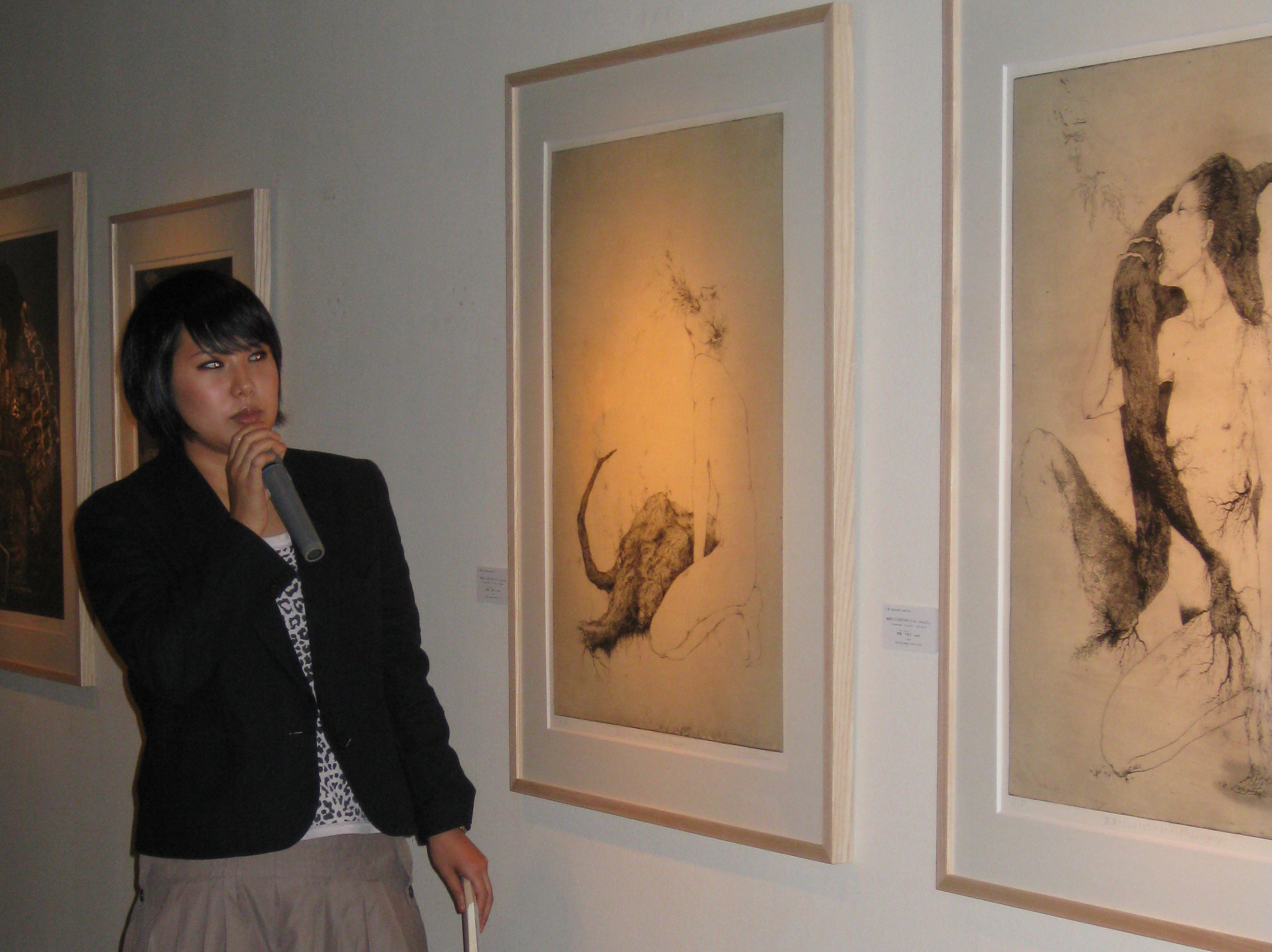 入 賞: 箕輪 千絵子(ミノワ・チエコ) 【日本】 ●入賞作品について モチーフとして私が注目したのはこの半分獣で半分人間の獣人なのですが、色んな神話にこういった象徴するものが出てくる共通性に興味を持ち、それから形の持つ魅力というのにどんどん興味がうつっていき、それに対するフェチシズムのような感情が生まれてきたんです。一見醜い、憎悪感を抱くような形というものを、怖い、嫌だと思う面と、逆に魅力を感じ始めた面と、自分の中で相反する気持ちが出てきました。 この作品〔罪深きことは何だか知っている -Paraphilia-〕はエジプトのミイラをモチーフになっています。はじめミイラをすごく気持ち悪いと思ってたのですが、いつの間にか魅力的に感じ始めて、いろんな人がこういう醜いものを見たときに、どこかこう受け入れて欲しいと思いながら描いています。 |