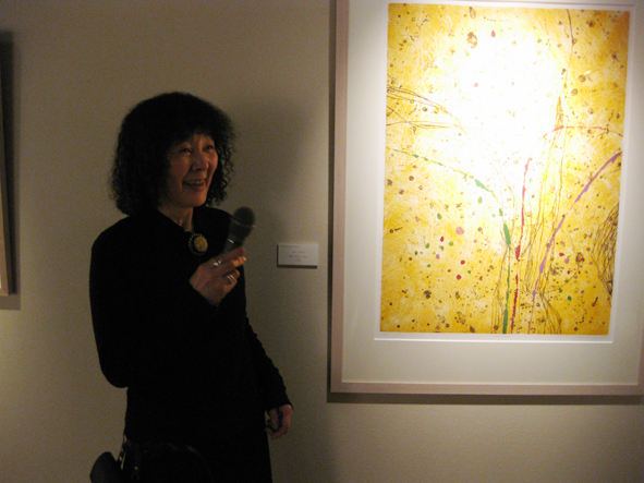 入 賞: 神野 芽生子(ジンノ・カヤウコ) 【日本】 ●入賞作品について そしてやっぱり私は人の人智を信じたくて、人は希望を持って生きていかなければと思い、夜明けを描いたんです。ここにコウモリが飛んでいるのは、コウモリというのはヨーロッパでは悪魔の象徴ですが、東洋では縁起のよい動物ですから、それを飛ばすことによって見る人に判断を委ねたいと思いました。私の中では希望、幸運をもたらしているものとして入れてみたんですね。 |