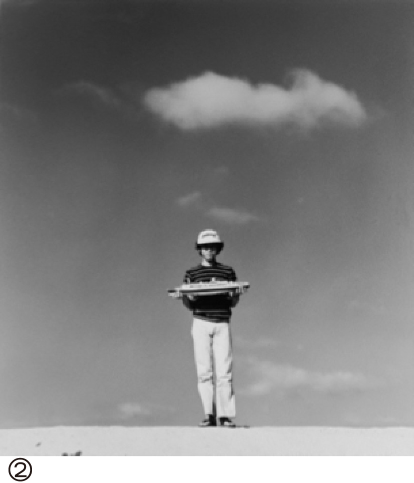 簡単に自己紹介をします。私は1967年生まれの、植田正治の長女和子の長男です。当時植田はまだ若かったのでおとうちゃんと呼ばされていました。夏休みになると私と姉は母方の実家である正治の家で過ごすという生活を送っており、何かにつけて身近なひとでした。きちんと写真を教わったわけでは無いですが、新しい作品がでると家族全員に「どう?」と見せるような自由なひとで、そういう部分が強く印象に残っています。植田正治事務所として色々な方々に植田正治のことを知っていただけたらと思い活動しています。 私が中学二年の時の写真(画像②)です。鳥取の家から数分のところの、弓ヶ浜という所で植田が撮った作品です。砂丘と書いてある作品は全部砂丘で撮影したとくくられがちなのですが、家族の作品シリーズはこの弓ヶ浜で撮った作品が多いです。 |