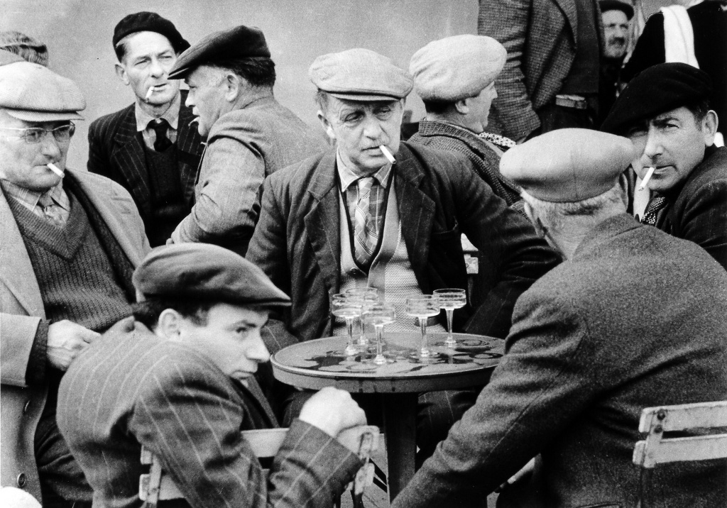 *撮影 (齋藤)3月下旬にはロワール渓谷で古城めぐりをしました。道中で見かけた牛馬の市で、そこに集まった人たちがカフェで休んでいる様子を撮っています。その写真が「憩える人々」というタイトルで、パリ外遊時の代表的作品の一つとして知られているものです。この写真を、どういうシチュエーションの中で撮ったのか、フィルムの前後を見てみたのですけれども、直前のカットまで馬がたくさん集まっているところを撮っていて、一枚だけこの場面を撮り、次のカットはもう別の所になっています。要するにこの場面を何枚も続けて撮っていたというわけではなくて、ワンショットでこの作品が生まれているんですね。日記には「牛馬の市で興味深い撮影」をしたと書いていて、やはり秋山庄太郎も手ごたえを感じていたのかもしれません。 |