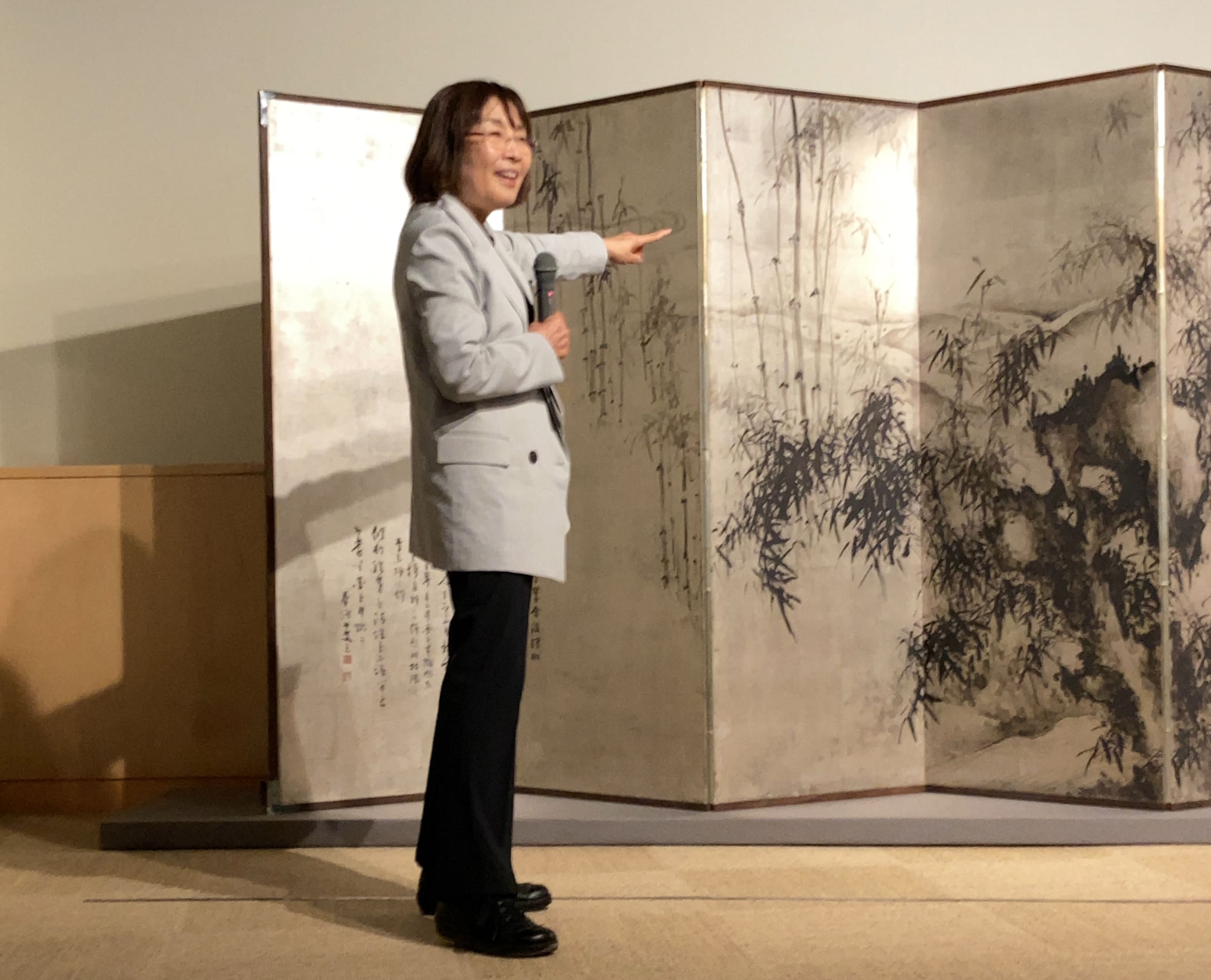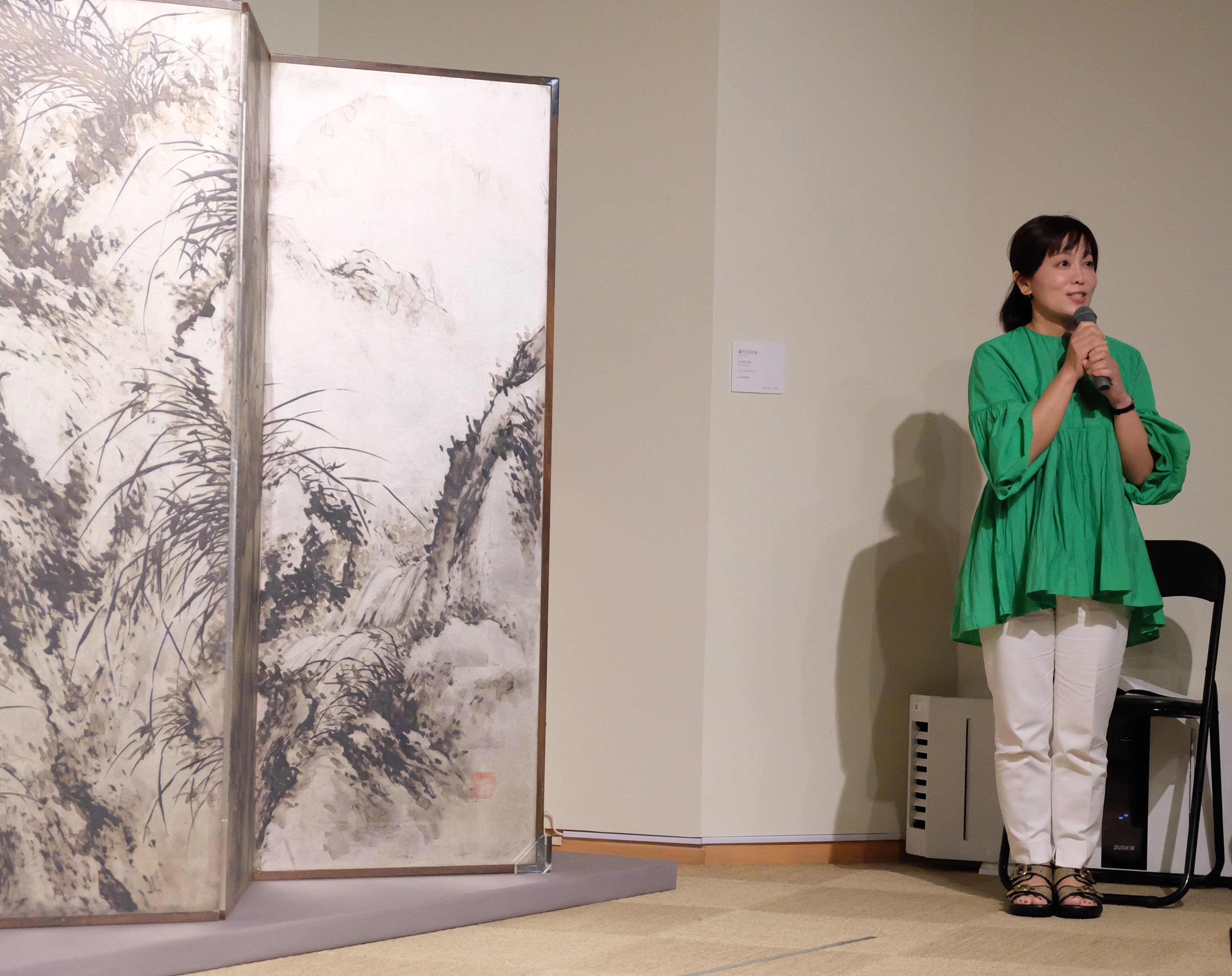 岩村)改めまして、この度この屏風を展示していただくにあたって、お声かけていただいてご尽力いただいた小田切様、それから美術館の皆様、解説していただいた先生もありがとうございます。 |