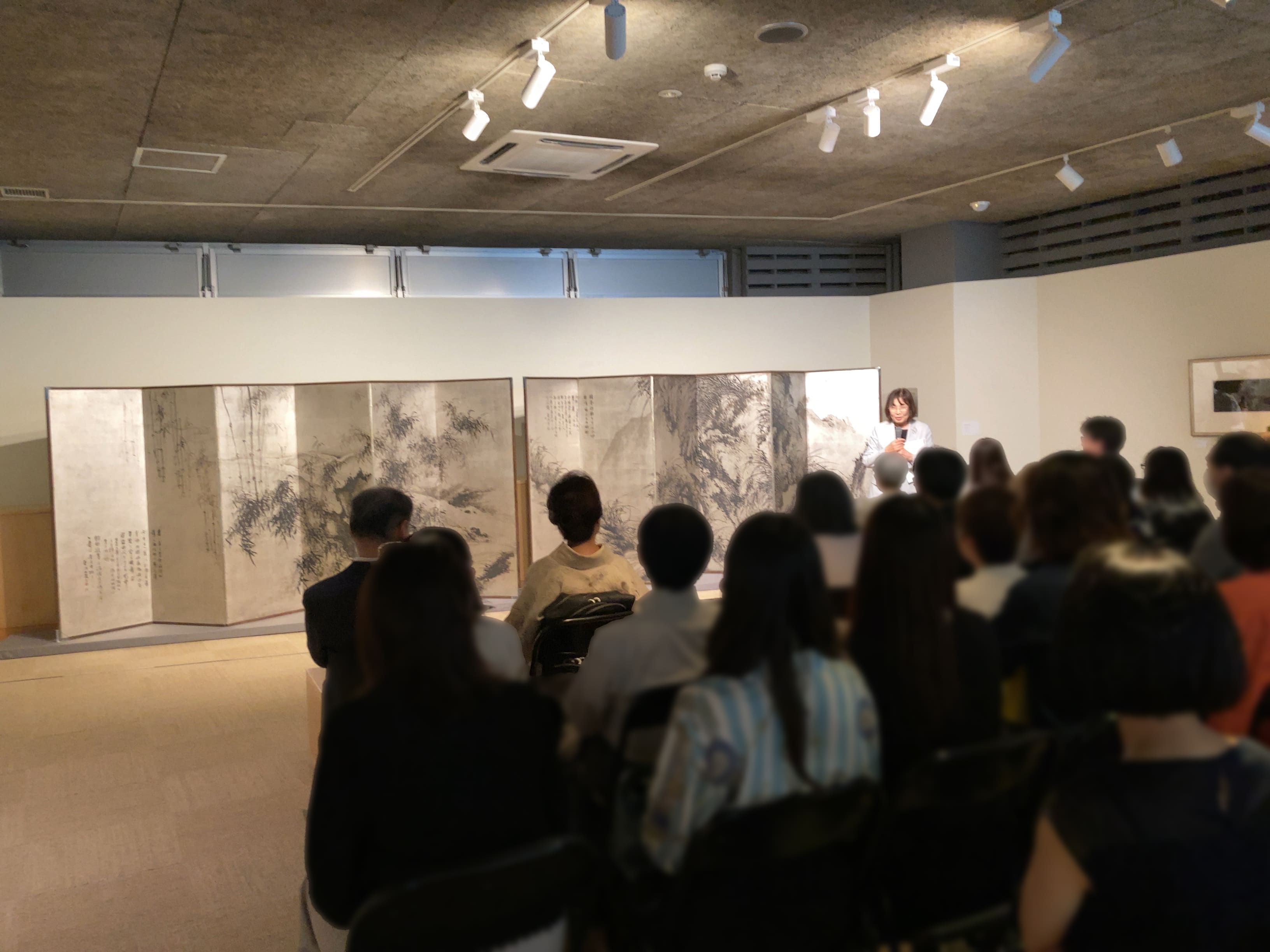 6月29日のギャラリートークの様子を一部、紹介します。波多野華涯の屏風や当時の文化状況をめぐり、話が尽きませんでした。お話の内容は、短い文字数に合わせて当館で編集していることをご了承ください。