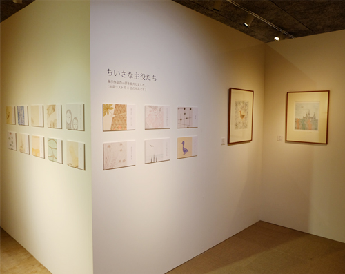 今回の展覧会は、その森の小さな葉っぱや小鳥たちが主人公です。技法の解説や、細部を拡大したカードを見ていただき、作品の中に入り込むお手伝いをいたします。繊細な情景の中をこころゆくまで散策し、ささやかなモチーフから物語を想像しながらご覧ください。