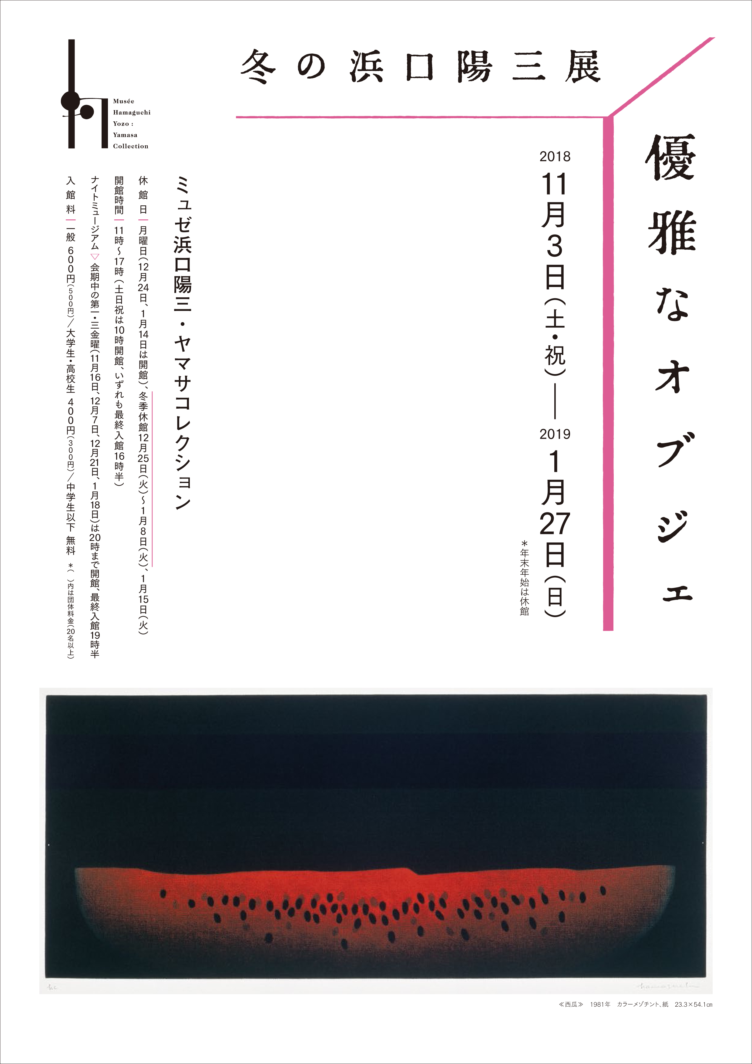 新年は1月9日より開館し、「冬の浜口陽三展 優雅なオブジェ」を再開いたします。
