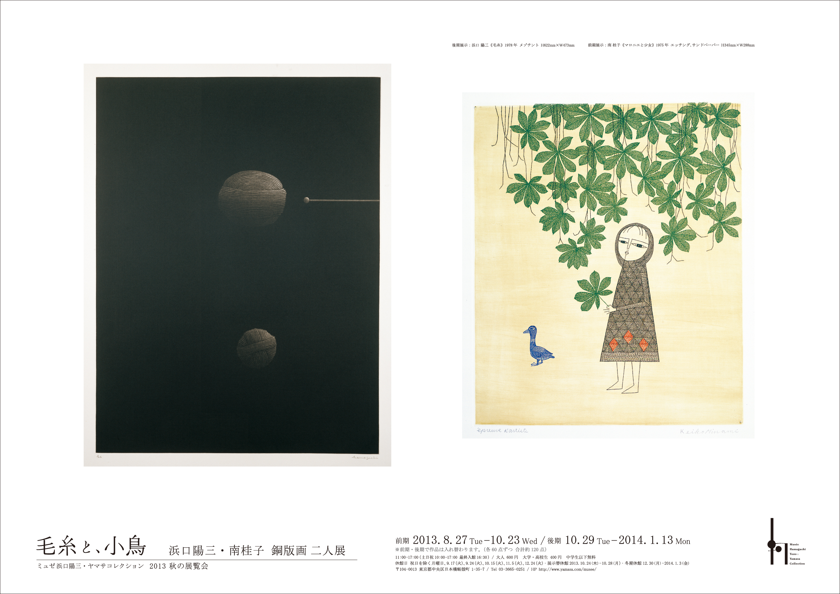 2013 秋の展覧会 毛糸と、小鳥 浜口陽三・南桂子銅版画二人展
