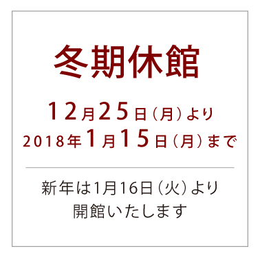 12月25日(月)~2018年1月15日(月)は冬期休館いたします。