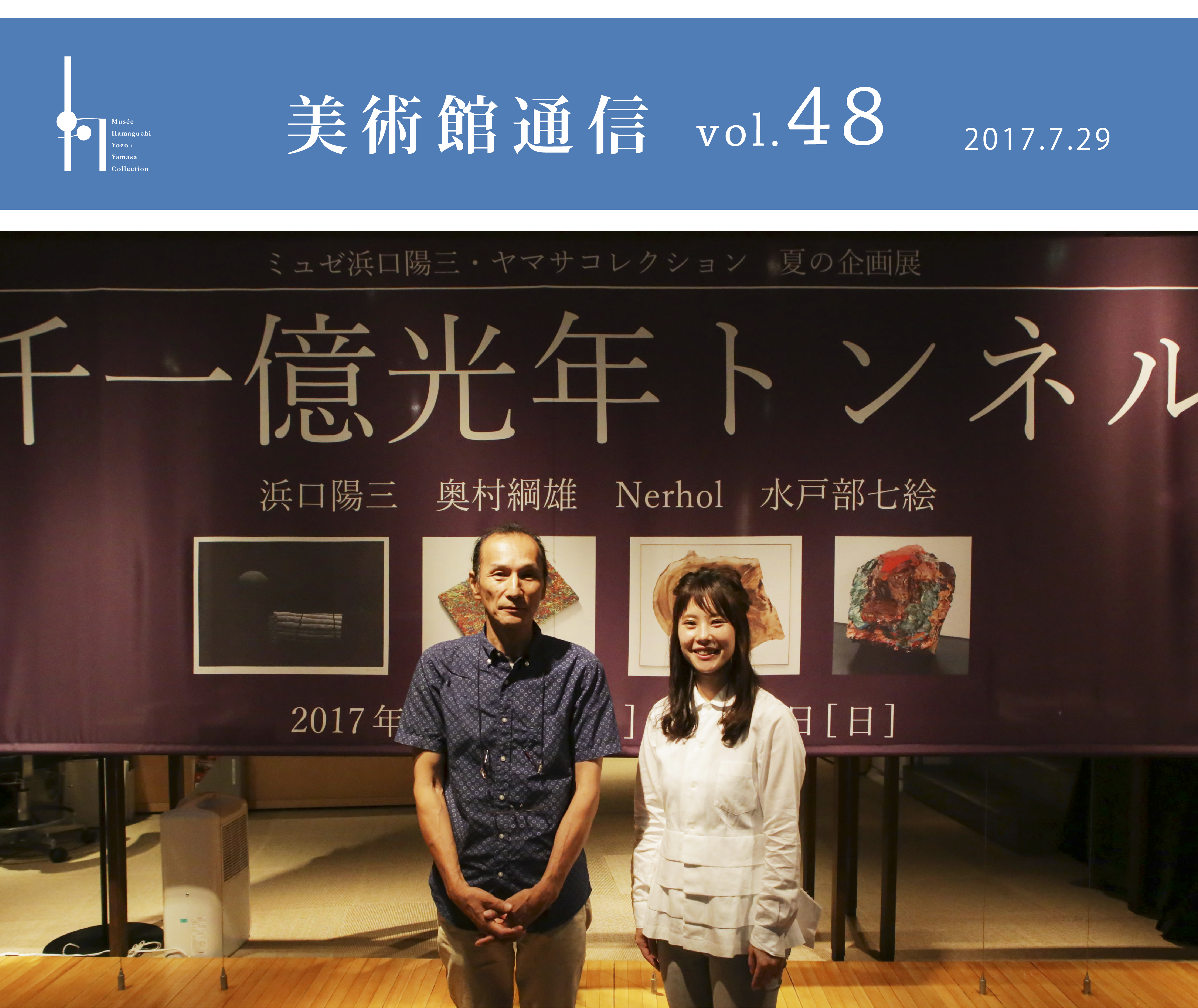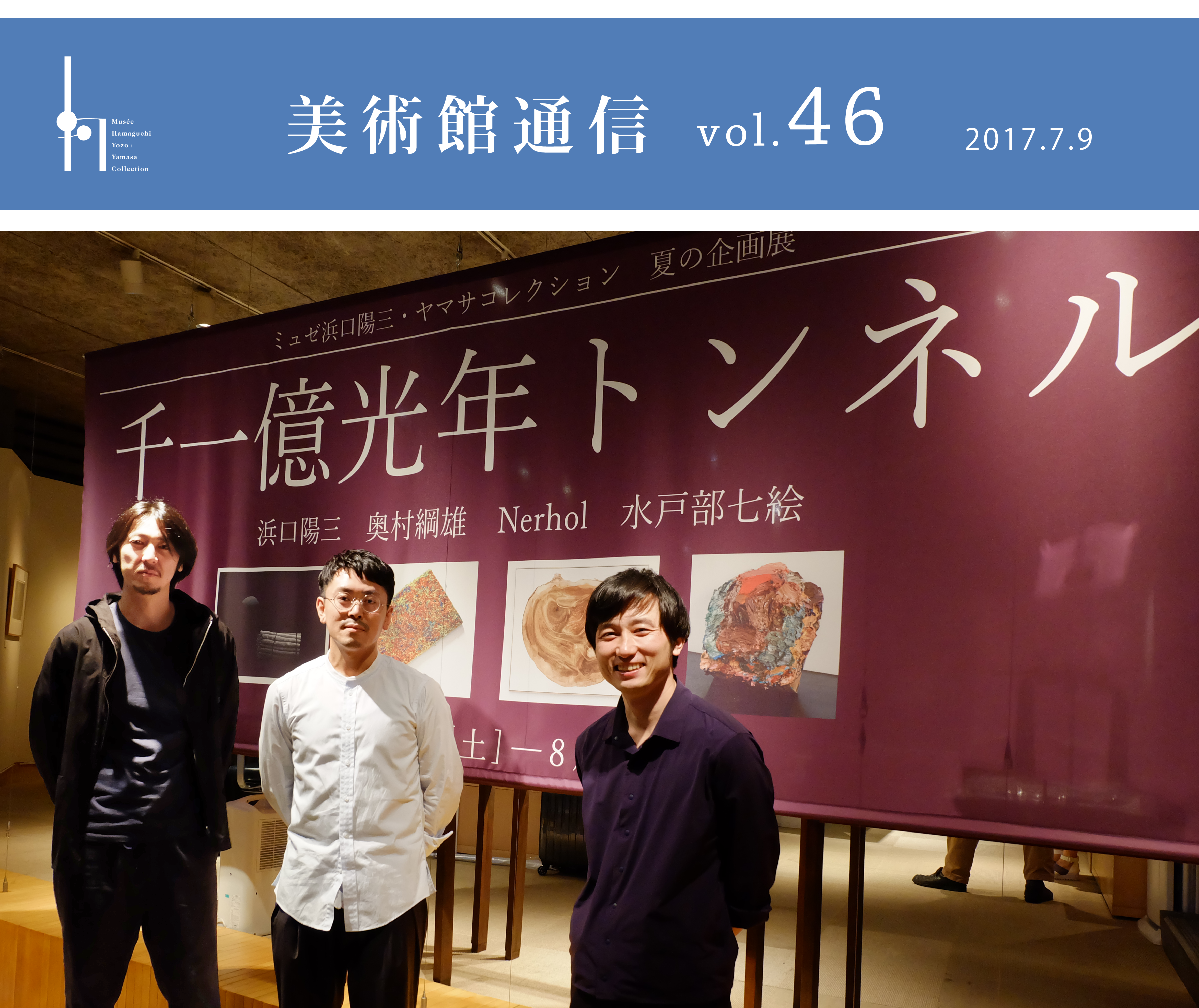 『千一億光年トンネル 浜口陽三、奥村綱雄、Nerhol、水戸部七絵』は終了しました。たくさんのご来館ありがとうございました。左の日程で展示替休館いたします(期間中は申請業務もメールのみです)。8月26日(土)より『浜口陽三展 カラー・トリップ』を開催します。