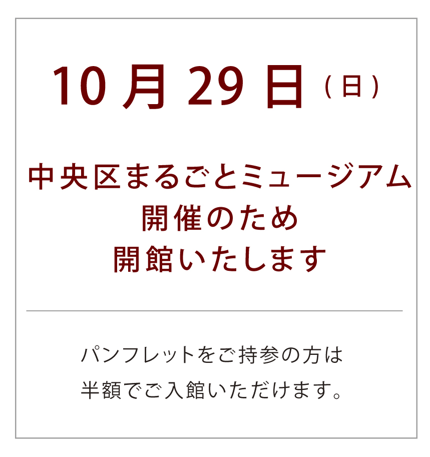 中央区まるごとミュージアムのパンフレットをご持参の方は半額でご入館いただけます。