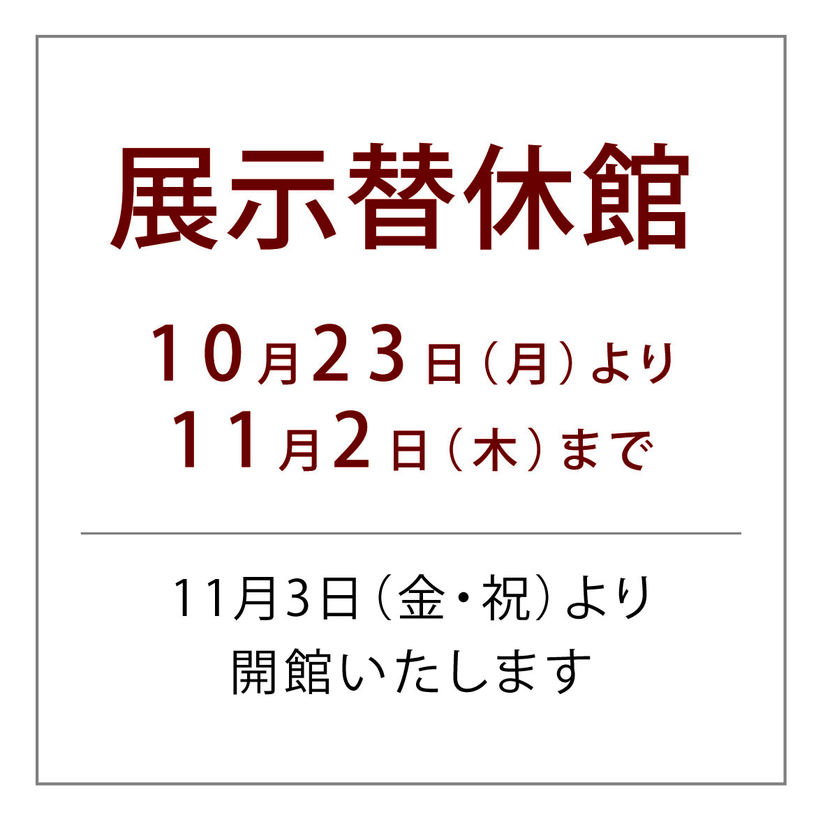 10月29日(日)は展示替え期間となっておりますが、