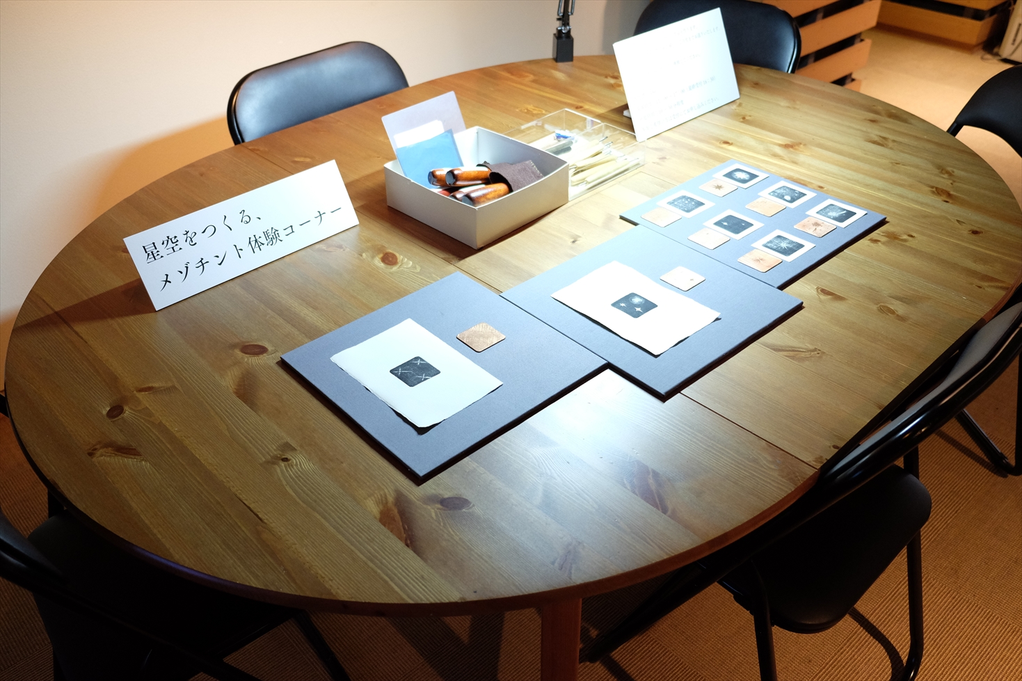 『浜口陽三と国際メゾチント展 TIME OF THE MEZZOTINT 星より遠い色』 会場には、どなたでもご参加いただける、メゾチント体験コーナーがございます。5cm角の小さな星空のメゾチント作品をつくる事ができます。参加の手引きと作品のご紹介はこちら 『星空をつくる、メゾチント体験コーナー』