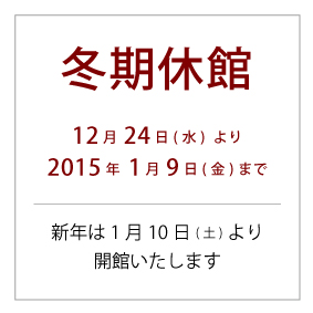 12月24日より2015年1月9日まで冬期休館とさせていただきます。