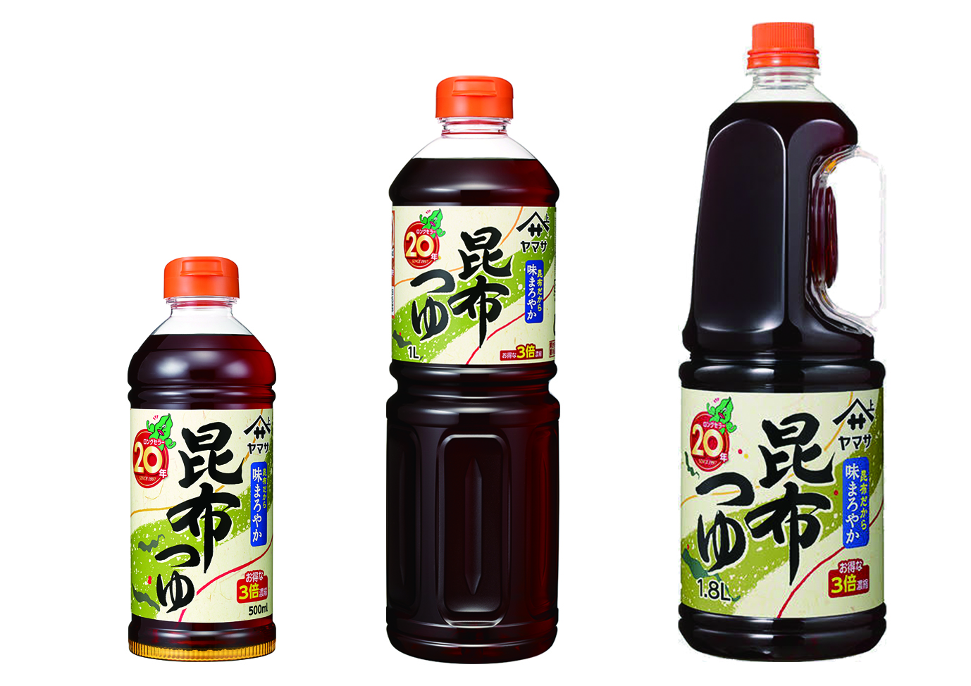 | ―20周年オリジナルロゴ入りラベル― 「ヤマサ 昆布つゆ500mℓパック/1ℓパック/ 1.8ℓハンディボトル」 |
