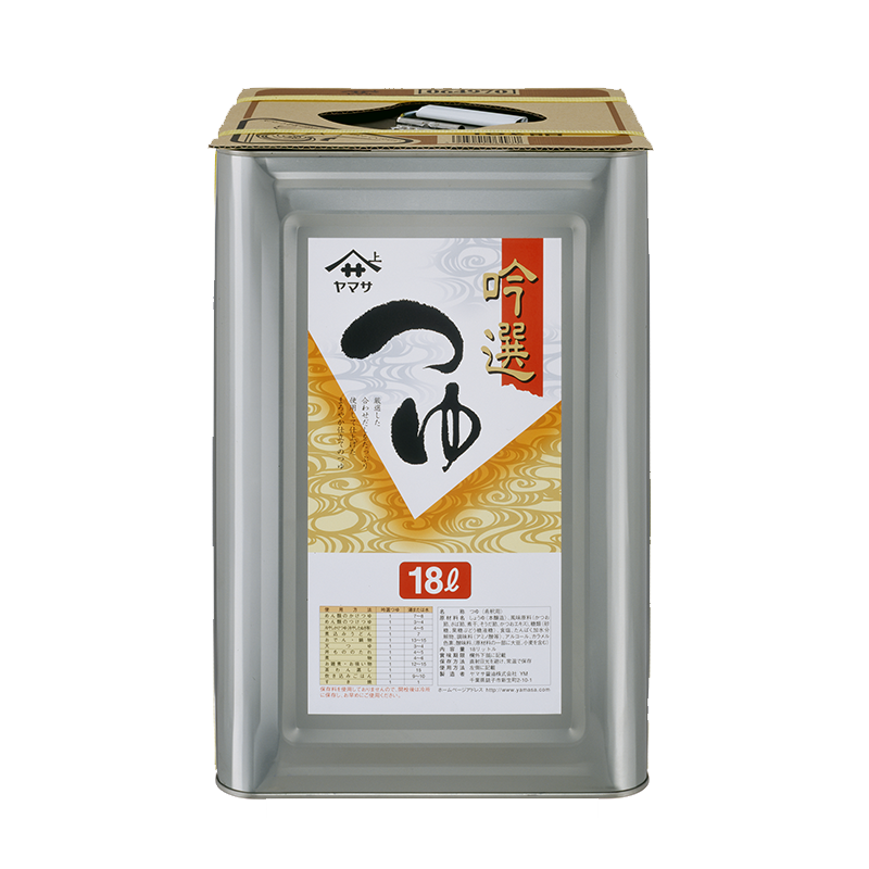 かつお節、そうだ節、さば節、煮干の合わせだしと「本醸造ヤマサしょうゆ」でバランスよく仕上げた、特にめん類のかけ汁に最適な濃縮つゆです。