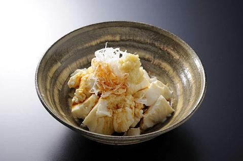 豆腐は包丁で切るのではなく、手でちぎるのがポイント。後は、削り節と「ヤマサ鮮度生活 特選丸大豆しょうゆ」をかけるだけ。冷奴はおいておくと豆腐から水気が出て味がぼやけてしまうので、作ったらすぐにいただきましょう。