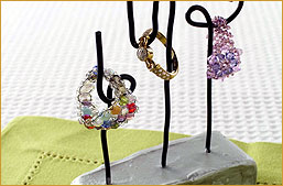 形を自由に変えられるワイヤーをねじって粘土に立ててペインティング。行方不明になりがちな指輪に指定席ができました。